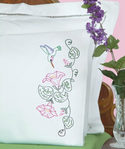 Jack Dempsey Needle Art 1600293 Perle Edge Pillowcase, Hummingbird with Perle Edge Finish, 20-Inch by 30-Inch, White
