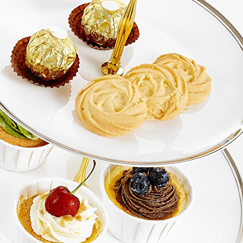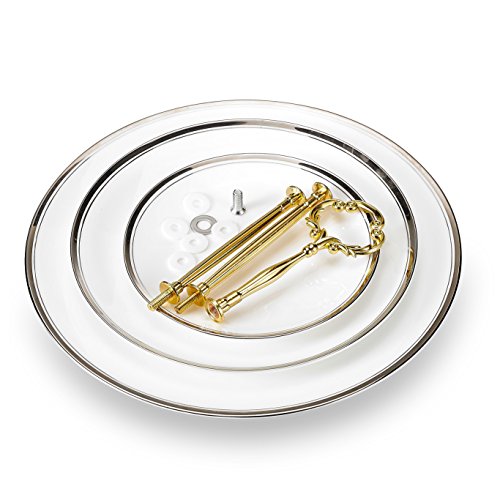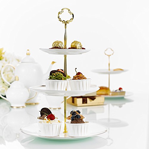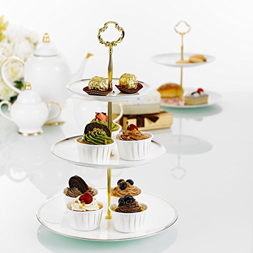 Specification Material: Bone China Color: Ivory Silver Pattern: Solid Color Packing size: 31.5*9*31.5cm Packing weight: 1300g 6" Top Plate Size 15*15*2*cm 8" Middle Plate Size 20.5*20.5*2*cm 10" Bottom Plate Size 25.5*25.5*2cm Package Includes 1 x 6" Top Plate 1 x 8" Middle Plate 1 x 10" Bottom Plate 1 x Iron string Made of high-quality bone china with smooth hand feel, easy to care for and wash Care instructions: Hand wash with warm soapy water. Do not use abrasive cleaners Features a metal loop making it easy for you to carry the stand to and from the table Each tiers are connected by solid pillars with screws for strength and stability using 0 |