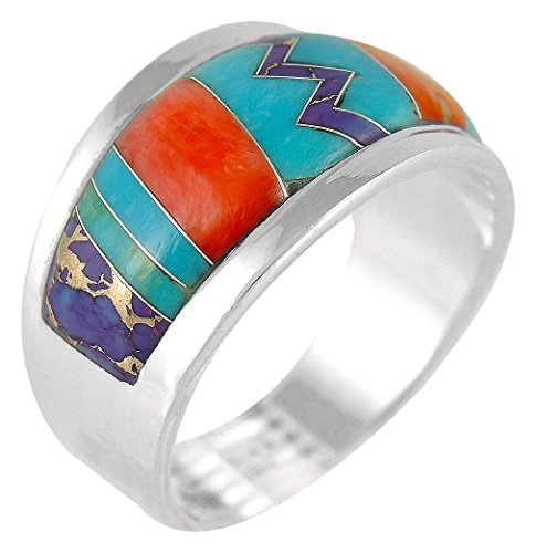 -. Title : 925 Sterling Silver Ring with Genuine Turquoise and Semiprecious Gemstones Sizes 6 to 11