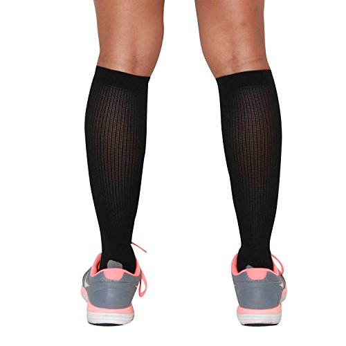 - Feature : Graduated Compression: The Performance Compression Socks are made with graduated compression. This means that there is the most compression in the ankle area and the least in the calf area, helping to push blood back to the heart. This not only helps to improve circulation, but also improves muscular endurance. The graduated compression also reduces leg and foot swelling. / Relieve Calf Cramping and Treat Shin Splints: By improving blood flow and circulation, the compression socks help to prevent calf cramping and offer support to those that suffer from calf strains. The compression socks also help to treat shin splints but providing support in the lower leg area. / Wear for Sports to Everyday Wear: The performance compression socks are able to be worn by everyone from runners, travelers, hikers, joggers, basketball players, nurses, and more. Whether using the compression socks to help gain an edge in your sport or to prevent leg fatigue from having to be on your feet all the day, your legs will appreciate the difference in performance and comfort. / Made In the USA: Unlike other compression socks made overseas, the Performance Compression Socks are Made in the USA to ensure they will last. We take pride in the quality of our socks and know these are the best compression socks you will ever wear. We guarantee it. / Moisture Management and Breathable: Made with performance fabric, the compression socks offer superior breathability. You can use them outdoors in the summer without feeling too warm. They allow legs to feel comfortable and you to perform at your best. The compression socks utilize an innovative moisture management system which wicks moisture away from the skin to help keep the compression socks dry. Whether you are a runner using the compression socks during a tough run or just using them in the gym while working out, the socks will stay feeling great.