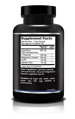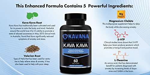 HOW WE ARE DIFFERENT • Our formula has Kava Kava plus 4 other natural ingredients that ease stress & anxiety--kava kava root, 5-HTP, L-theanine, Valerian Root, & Magnesium Chelate