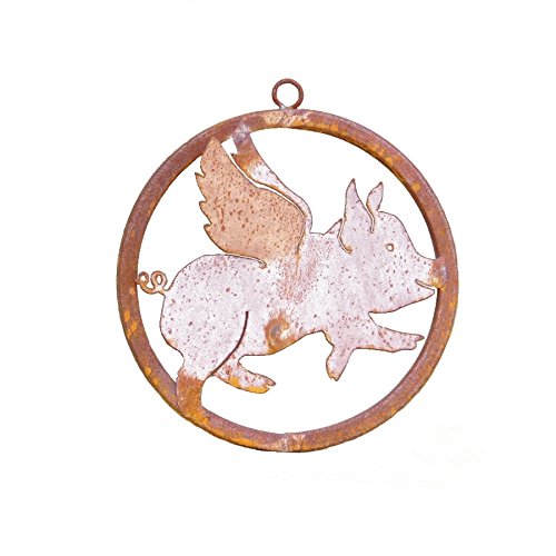 Elegant Garden Design Flying Pig Ring, Steel Silhouette with a Rusty Patina