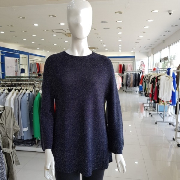 은사 배색 라운드 롱니트티 -JA7F9-WSL200-D/네이비