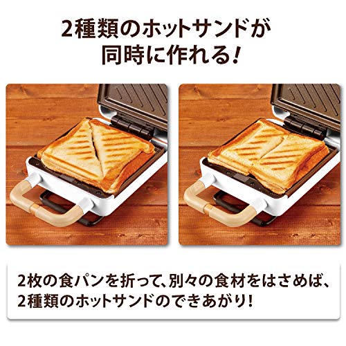 2枚の食パンを折って、それぞれ別の食材をはさめば、2種類のホットサンドを