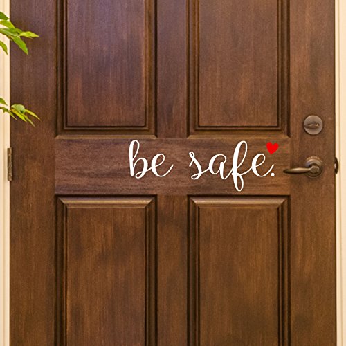White Be Safe Vinyl Front Door Decal with heart - Be Safe Vinyl Decal, Home Vinyl Sticker, 12.3" W x 4.2" H