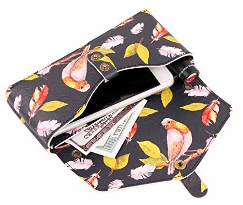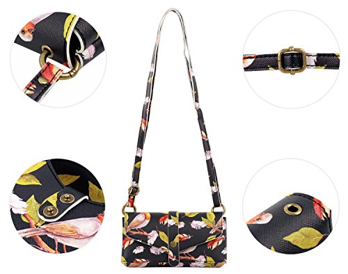 Studio : VINVEA Publisher : VINVEA Product Description The VINVEA mini crossbody purse is fineness water-resistant synthetic leather construction, with good strength and toughness for everyday use. Features a flap top with convenient snap-on closure. The main compartment fits most selfie digital camera, sunglasses, built-in a slot to keep a 6-inch smartphone, commuter cards, cash, coins or other smaller stuff. This little fashion bag has multiple ways to carry for different occasions. It comes with dual round brass buckles, can be easily attached to the shoulder strap of backpack or waist for quick access. The adjustable crossbody strap is nice for customized fit and hands-free. Detaching the belt, you will get a stylish clutch. It's easy to care and clean. Remove the stains by wiping gently with water, mildew-free and smell free in cool and dry place. Specifications ? Exterior Dimensions: 6.7x3.7x1.2 inches ? Interior Dimensions: 6.5x2.9x1.0 inches ? Weight: 3.8 oz ? Material: All over printed synthetic leather, brass hardware. Reliable Quality and Service ? Each VINVEA order includes a 12-month worry-free guarantee for quality. 0