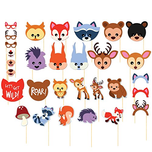 -. Feature : WOODLAND ANIMALS PHOTO BOOTH PROPS: This set contains 30 parties and events photo booth props for selfies, party games and all kinds of fun! / DURABLE: Manufactured using high quality 350 GSM paper card stock, to make those colors pop in your photos and sturdy cardstock that are perfect for any upcoming birthday parties, outdoor events, or celebrations. / IDEAL PHOTO COMPANIONS: These props are ideal as novelty photo booth decorations for use with friends for your social media profile, personal scrapbook or photos for nostalgia in years to come. / SIMPLE DIY ASSEMBLY: Attach included dowel stick to photo booth props with included clear stickers. Add glue (not included) to reinforce hold. / DIMENSIONS: Smallest piece: 1.7 inches in diameter; Largest piece: 8 x 2.9 inches