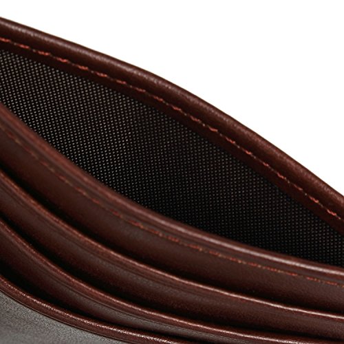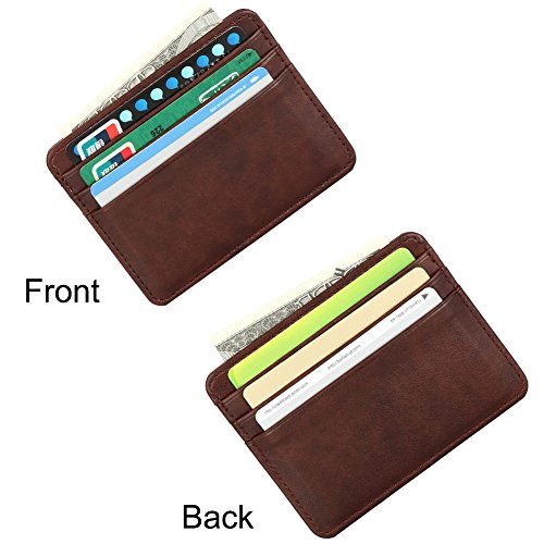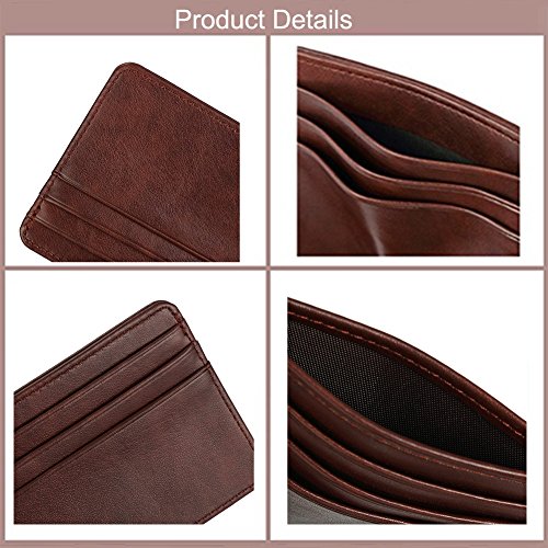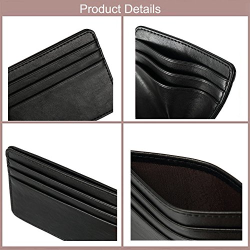 ★100% Genuine Leather,super cowhide leather,soft leather,durable and well made. ★Ultra Thin,slim fit,only 0.1" thickness,makes it easy to slide into your front or back pocket,great for daily use. ★6 card slots and 1 open section,will well organize your ID, driver license ,credit cards and some folded cash.