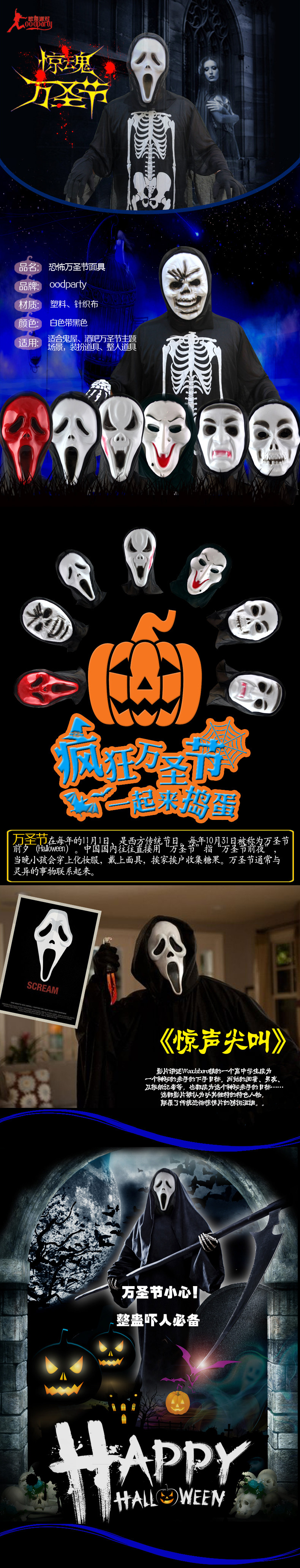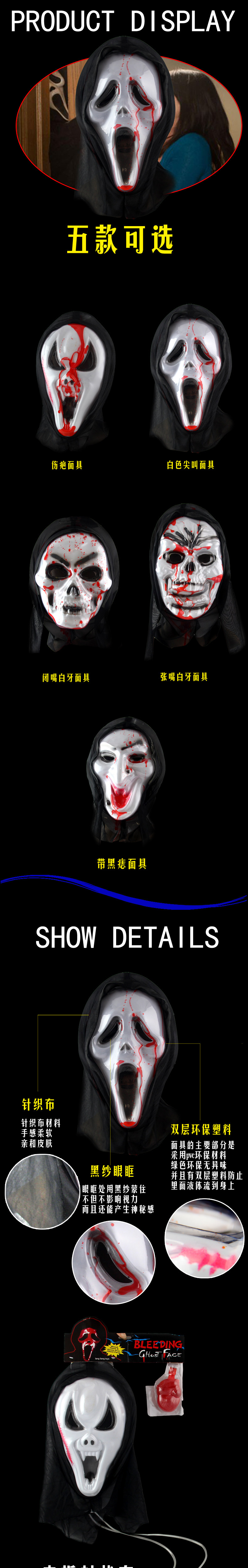 万圣节恐怖惊声尖叫巫婆吸血鬼骷髅面具喷血鬼怪面具