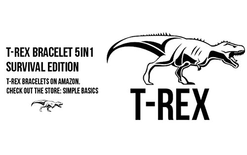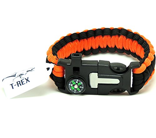 5in1 T-REX Paracord Bracelet; Survival Edition Featuring Outdoor Fire Starter Scraper Whistle & Compass for Emergency Survival Hiking