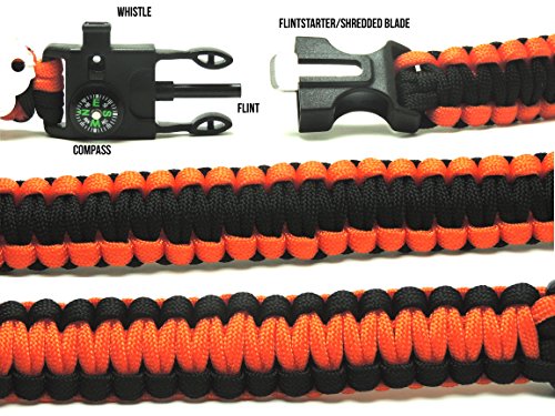 5 in 1 Survival Paracord Bracelet with Compass, Whistle, Paracord, Blade, and Fire Starter