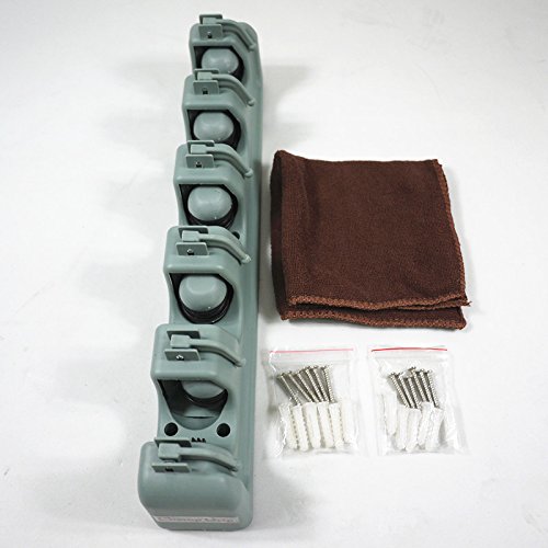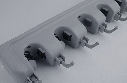-. Feature : Purchase with confidence. You won't regret it. Here is why you should trust us : Our Brand Champ Grip® is Registered with Amazon and TradeMark with USPTO. We are the genuine seller. Our reviews are genuine. Our products are specially made, unique and under stringent stress tests. We provide 100% customer satisfaction and Lifetime Guarantee. / There are 5 ball slots and 6 hooks so you can organize 11 cleaning utilities in one place. Hooks can be folded up and out of the way. Easy to follow installation instructions are provided and free microfiber cloth. / Fast delivery. Easy to fix. 6 screws and 6 anchors to hold the wall mount organizer to ensure strong and sturdy holding. Additional packet of screws and anchors are provided in case you lost some of it. Notice : Please do not over tighten the screws as the holder is made of plastic. / It has rubber grips on both sides of the ball slot so it holds very well. It is guaranteed non slide even with the thinnest or smoothest handles will not slide down. It can also hold heavy items without sliding down. Upon hanging wet mops it can dry or air out so that you won't have that "musty" odor. / It can be used anywhere in the garage, garden, kitchen, laundry, offices and much more you name it. It is strong, sturdy, long lasting and weatherproof. Our products are premium quality with a good price. Its 100% no risk Money Back Guarantee. Important Notice : The small square rubber wedge can be removed to increase the holding size of a handle up to 3 cm. If the rubber wedge is lost you can still hang your tool without slipping. Functionality is still the same.