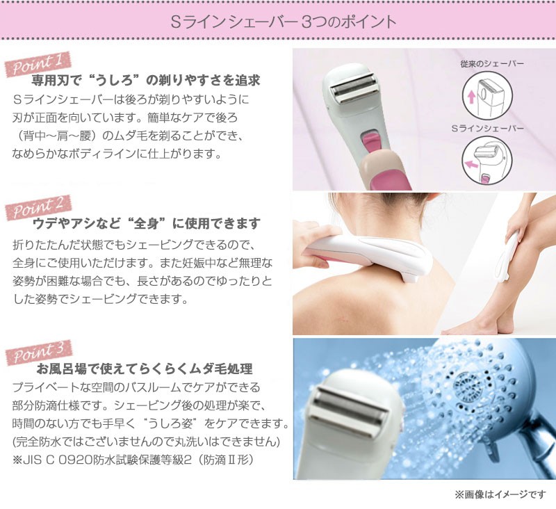| 商品説明 | 背中が剃れる!ロングシェーバーだから背中の毛もらくらくセルフケア。折りたためるので、腰や背中だけなく腕や足など全身にもお使いいただけます。 |