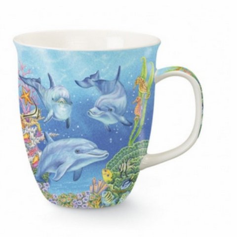 -. Feature : Beautiful edge to edge decal and handle decal. / Dishwasher and microwave safe. / 16 oz. Capacity. / Dolphin cove design