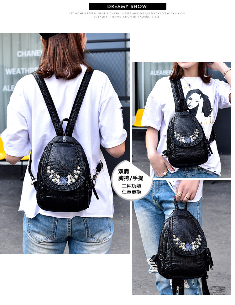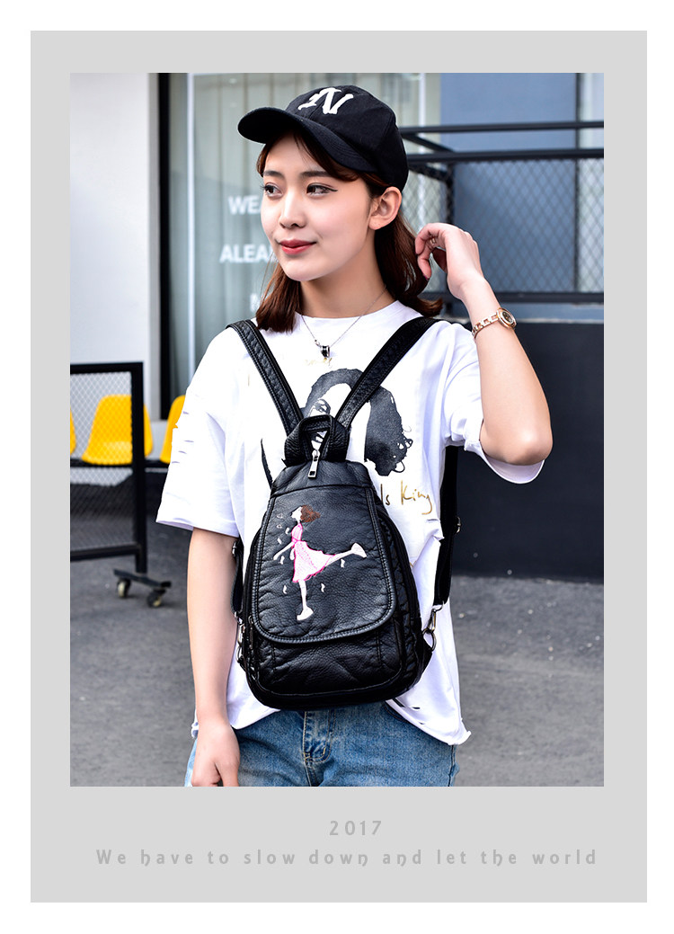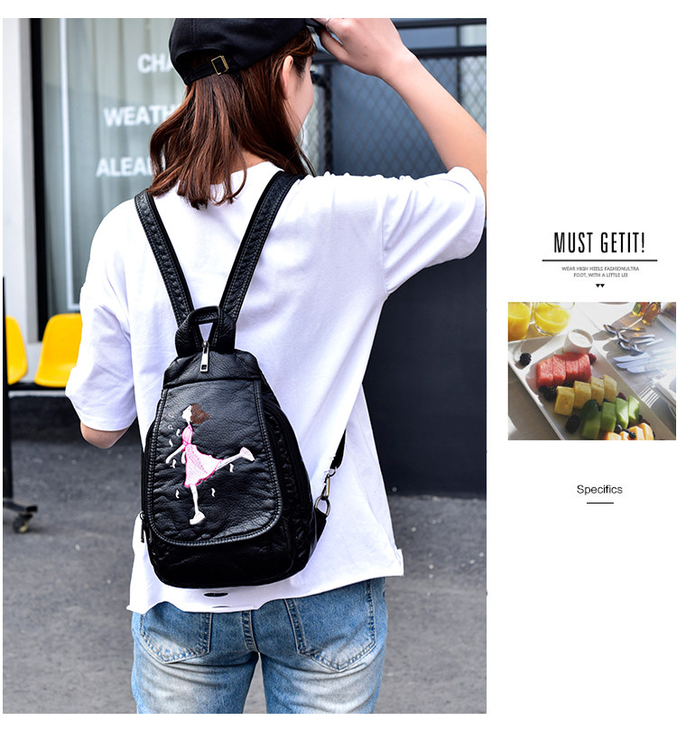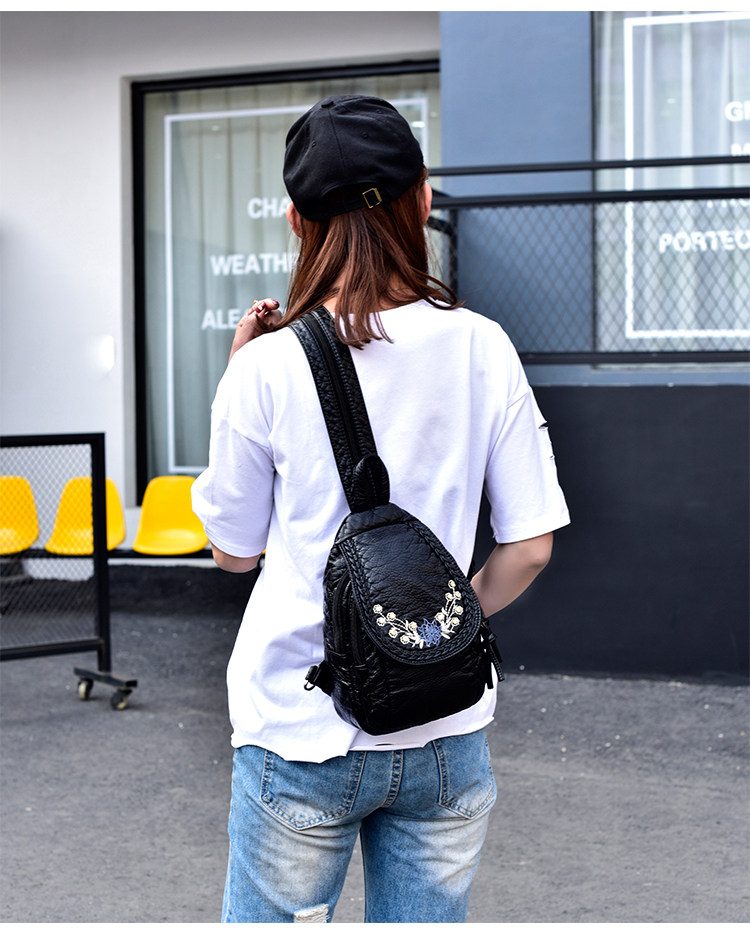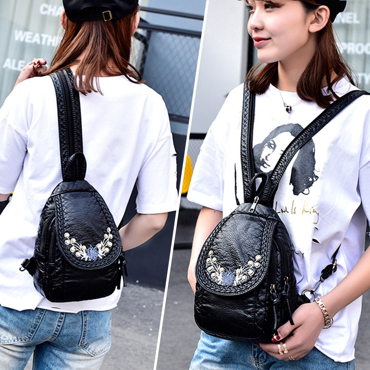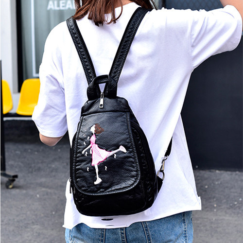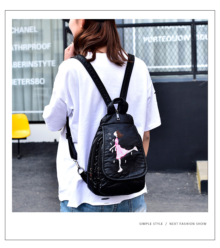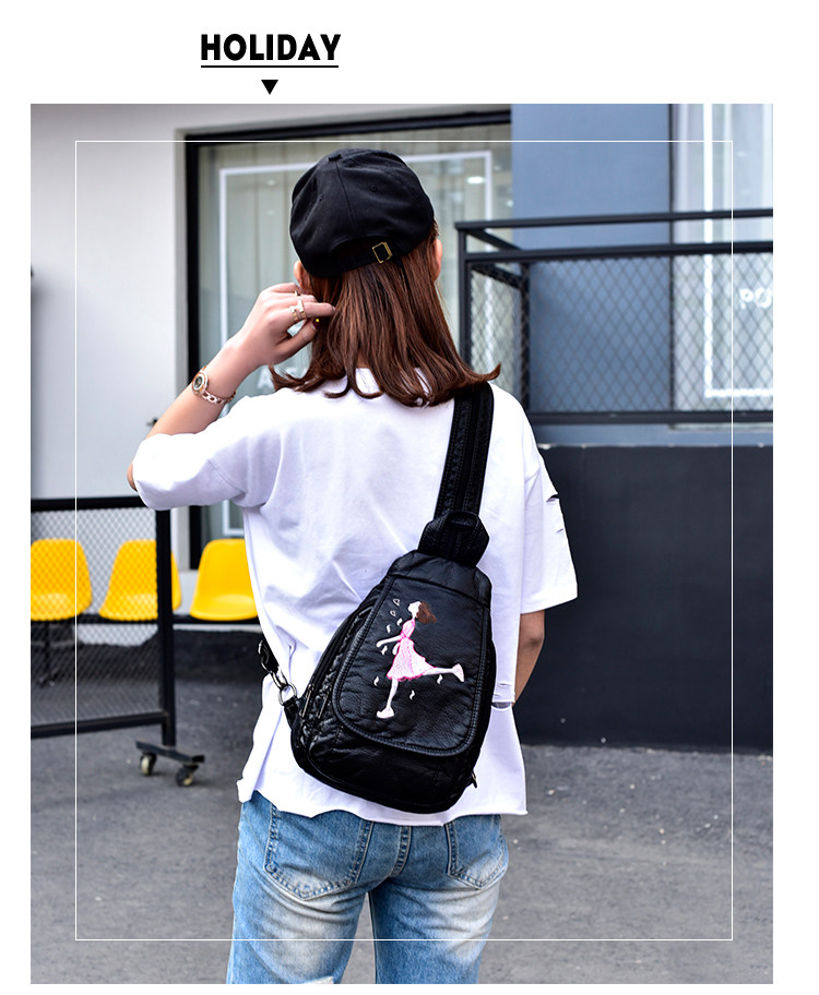 Product details of Women mini travel soft leather chest pack small bag shoulder bag (Embroidery little girl) (Embroidery little girl)