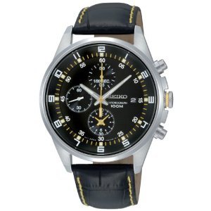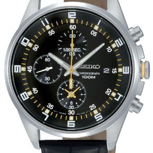 세이코import Seiko Mens SNDC89P2 Leather Synthetic Analog with Black Dial Watch【병행수입】