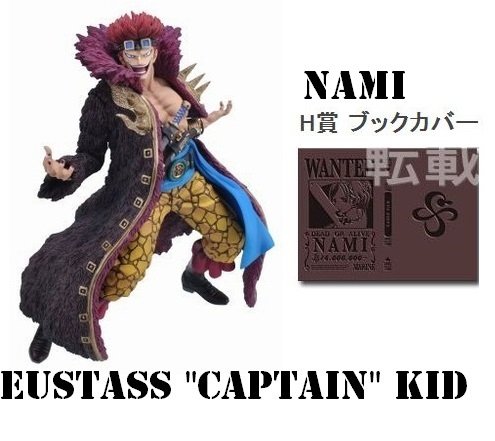 B賞 ユースタス・“キャプテン”キッド フィギュア 億越えルーキーの中で最も懸賞金の高いユースタス・“キャプテン”キッドのフィギュアです。 動きのあるポーズをリアルな造形で再現しました! また武器などの細かいパーツの再現にも注目です! 一番くじ ワンピース GIRLS COLLECTION vol.2 ~The Strong Girls~ H賞 ブックカバー ナミ柄 H賞 ブックカバー ブックカバーはくじでは初商品化!シックなレザー調の風合いで、持ち歩きやすいです。 コミックサイズなので、お気に入りの一冊のおともにどうぞ!Feature