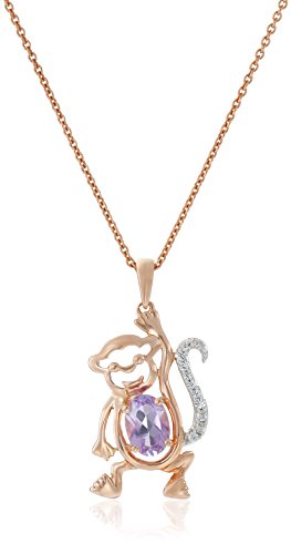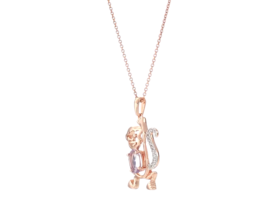 14K Rose Gold over Sterling Silver Rose De France Amethyst with Created White Sapphire Monkey Pendant Necklace, 18"