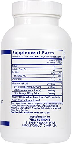 Vital Nutrients - Ultra Pure Fish Oil 700 Enteric (Pharmaceutical Grade) - Hi-Potency Deep Sea Fish Oil, Cardiovascular Support - 90 Enteric Coated Capsules