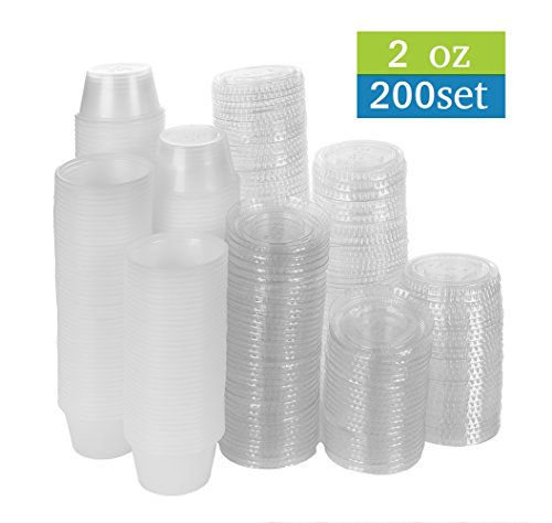 TashiBox 2 oz disposable portion cups with lids, set of 200 - jello shot cups, souffle cups, sampling cups, sauce cups