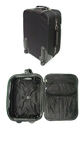 -. Feature : Made of red 1800d polyester / Expands 2" extra, but still a carry-on / 2 shoe pockets & a zip mesh pocket & a pouch for accessories in main compartment / Locking pull-up handle & recess wheels for easy maneuverability / Color: Black