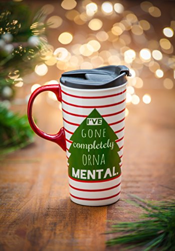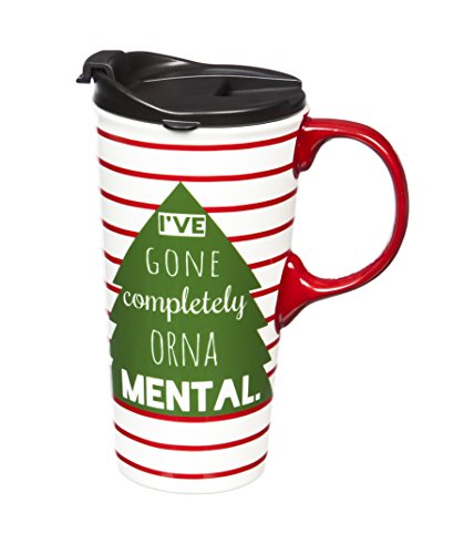 Cypress Home Orna-Mental Ceramic Travel Coffee Mug, 17 ounces