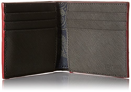 Saffiano leather with bandana print. Jack Spade logo is embossed in contrasting color, with matching contrast edges.