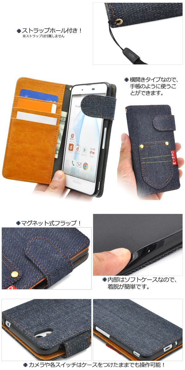 デニムデザインのAQUOS用スタンドケースポーチ。 衝撃やキズなどからAQUOSを守ります。 内部ケースはソフトケースなので、着脱が簡単です。 男女どちらでもお使いいただける、スタイリッシュなデニムデザイン。 内側は落ち着いたレザーデザインです。 背面を折り返すとスタンドとして使用できるので、動画視聴に便利です。 落下防止に便利なストラップホール付きです。 横開きタイプなので、手帳のように使うことができます。 また、内側に3つのカードポケットとサイドポケット付きです。 ※AQUOSは付属しません。 ※ライセンス商品ではありません。 |