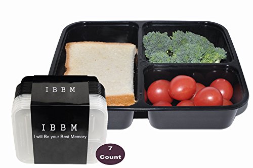 IBBM 7 Pack Reusable 3 Compartment Food Storage with Lids - Black