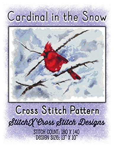 Cardinal in the Snow Cross Stitch Pattern - Beautiful Redbird on a Snowy Branch - Easy to Read Pattern