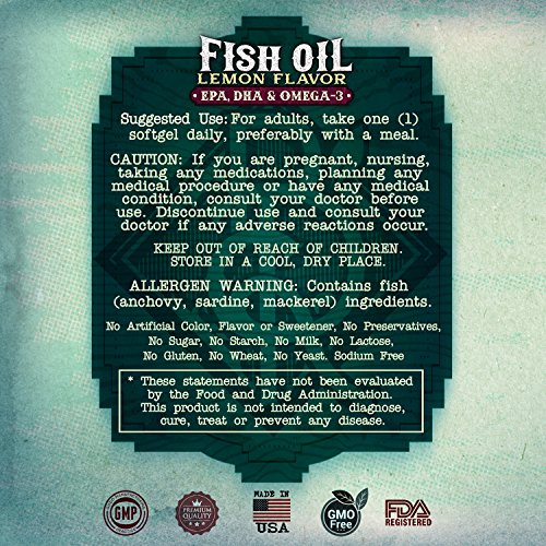 Fish oil comes from the tissues of oily fish and is a concentrated source of omega-3 fats. Omega-3 fatty acids are one of the most important essential nutrients the body needs and can only be obtained by eating fish or by taking a high-quality fish oil supplement. Fish oil contains two very important omega-3 fatty acids: EPA (eicosapentaenoic acid) and DHA (docosahexaenoic acid). Research shows that consuming omega-3 fatty acids provides many health benefits including the promotion of a strong and healthy heart. Our Pure Fish Oil contains both EPA and DHA, two of nature's richest sources of omega-3 fatty acids that are vital for optimal cardiovascular, cellular and metabolic health. Benefits of Fish Oil with EPA & DHA Omega-3 fatty acids include the following: · Supports Healthy Heart & Joints · Enhances Cardiovascular Health & Function · Promotes Cellular & Metabolic Function · Boosts Cognitive Function & Memory · Supports Normal Cholesterol & Blood Pressure Levels · Helps Reduce Inflammation · Reduces Signs of Aging & Promotes Overall Well-Being · Helps Relieve Symptoms of Dry Eyes · 100% Natural, Gluten Free, Non-GMO · Vegetarian Friendly. Our company only offers dietary supplements that are of the highest quality and made with the most effective ingredients. Proudly manufactured in the U.S.A. in an FDA registered and GMP compliant facility. Our manufacturer performs strict microbial and heavy metal testing for all products manufactured and shipped from their facility. Your satisfaction is 100% guaranteed or your money back. Click the "ADD TO CART" button and order now!Feature