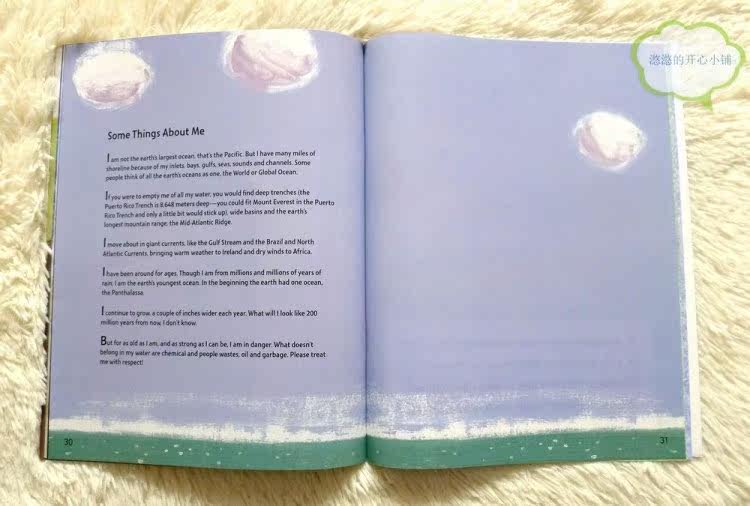 Text is very interesting, children can learn to understand the Atlantic like a new friend; the picture beautiful, not only to learn knowledge, or a beautiful visual enjoyment ~ The book comes with a few poems are great!