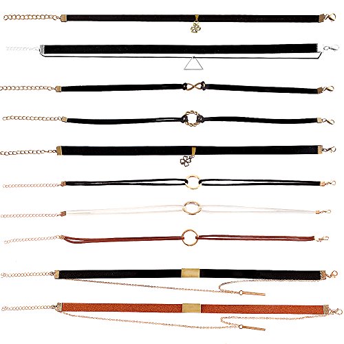 Outee 10 PCS Black Choker Necklace Set Velvet Necklace Choker for Women and Girls