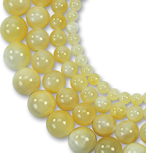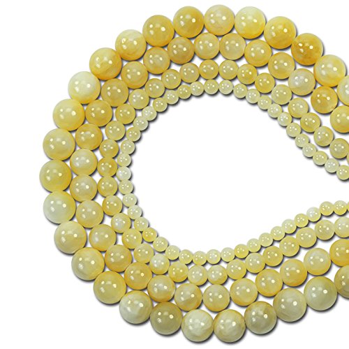 LK-CRAFTS Natural Yellow Jade Gemstone Round Loose Beads For Jewelry Making Findings /Accessories 1 Strand 15.5 inches - 8mm