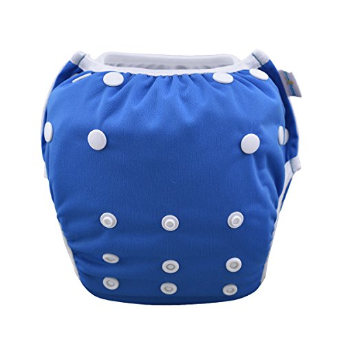 Product highlights: A trim and attractive design that has a terrific fit on any baby. Waterproof 100% polyester PUL outer layer, designed for holding solids. Interior Polyester mesh for easy clean up, offering comfort against baby's sensitive skin. Interior Polyester Elastics at the waist and leg openings with soft lycra bindings provide a secure, stretchy fit and easy on and off. Small size fits all: by adjusting the front corresponding snaps. Just perfect for saving your money in the long term. Reusable and hand/machine washable. These swim diapers can fit baby 0-2 years, suitable weight: S(10-18lbs/4.5-8kg), M(18-30lbs/8-13.5kg), L(30-40lbs/13.5-18kg) 。