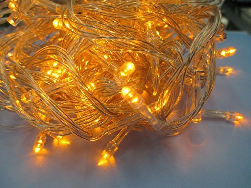 Autolizer 100 LED YELLOW Fairy String Lights Lamp for Xmas Tree Holiday Wedding Party Decoration Halloween Showcase Displays Restaurant or Bar and Home Garden - Control up to 8 modes