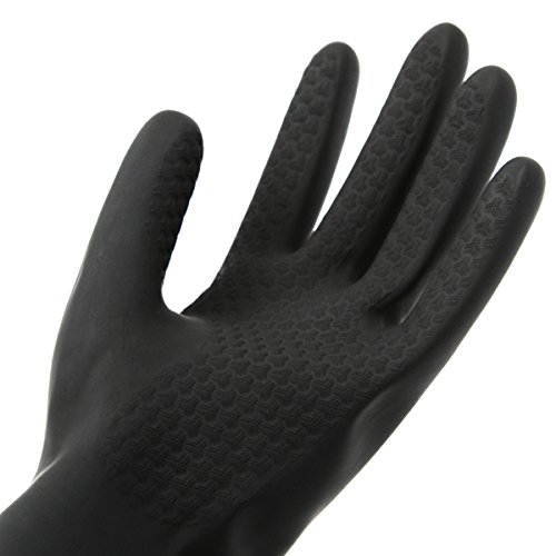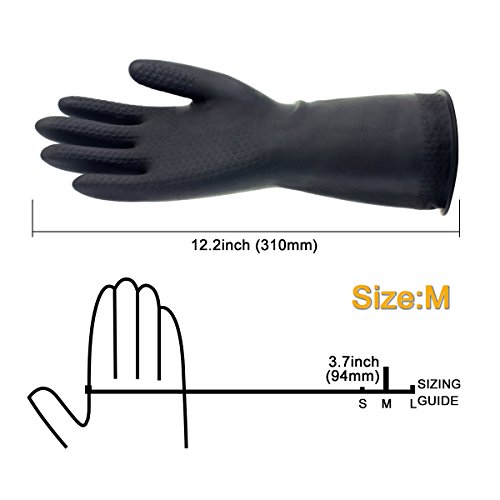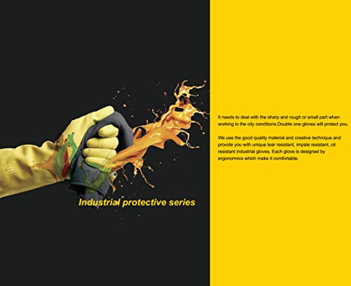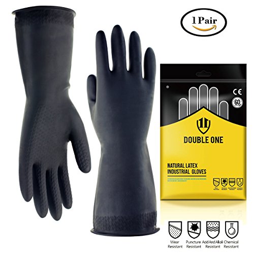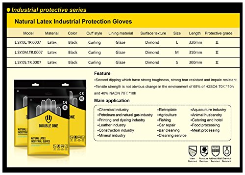 Studio : DOUBLE ONE Publisher : DOUBLE ONE Binding : Misc. Product Description Industrial gloves Double One Natural Latex Indusrial Protection gloves Application: Chemical Processing,Household Cleaning,Car Washing,Machine Maintenance,etc. Feature: Strengthen vulcanization technology,Acid and alkali resistance,Wear-resistant,Long durability Second dipping which have strong toughness,strong tear resistant and impale resistant. Tensile strength is not obvious change in the environment of 68% of H2SO4 70℃*10h and 40%NAON 70℃*10h Material:Malaysia imported latex by CE / SGS international testing and certification Color:Black Cuff style:Curling Ling material:Glaze Size: M Length 12.2"(310mm) Width 3.7"(94mm) Weight:3.43 Ounces