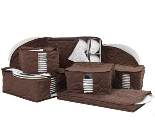 Richards Homewares Micro Fiber 8 Piece Dinnerware Storage - Brown