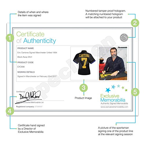 - Officially licensed retro Manchester United 1994 away shirt, with Cantona 7 numbering, short sleeves, signed by Eric Cantona.
