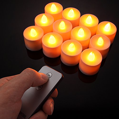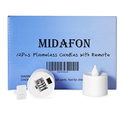 Midafon 12 Pcs Remote Control LED Flameless Candles Votive Candles Flickering Tealight Candles Battery Operated With Remote