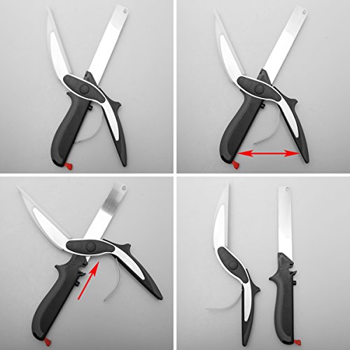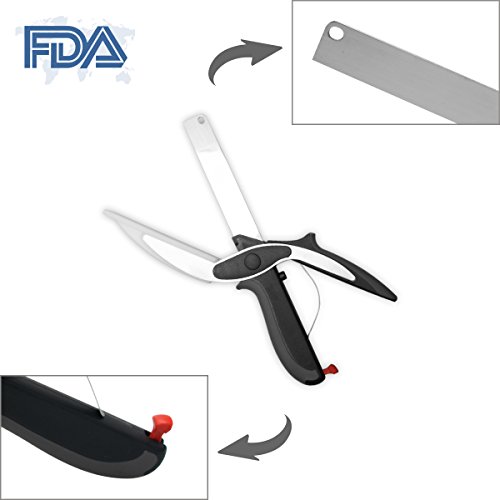 IHOMEARD Food Chopper - Stainless Steel Knife with Cutting Board Built-in– Use for Quick and Easy Cutting in Your Kitchen and on Picnics as Food Chopper, Food Scissors, Vegetable Slicer, Fruit Cutter