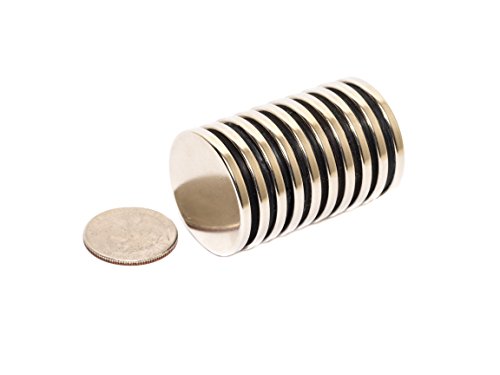 Revitalizaire 1/8 Inch Thick N42 Neodymium Disc Magnets 1.3 Inch Diameter 10-Pack. Powerful NdFeB Rare Earth Magnets Coated with Thick Nickel and Copper Plating. Silver Color