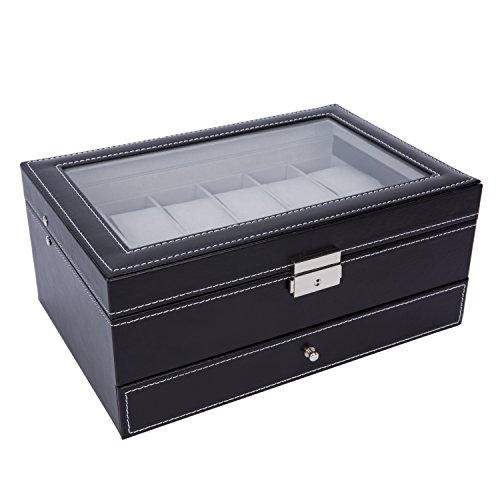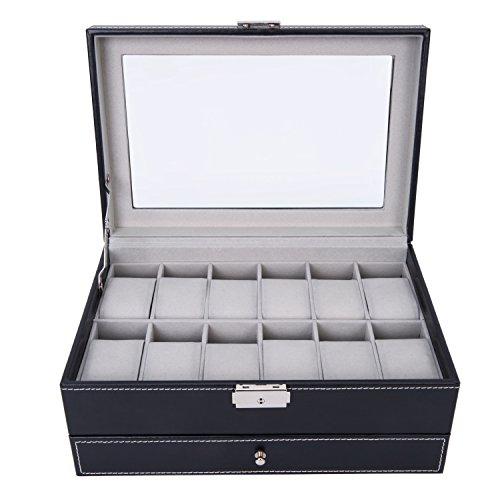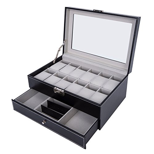 -. Binding : Kitchen -. Brand : Gregarder -. Feature : Size:11cm x11cm x8cm(4 3/8" x4 3/8" x3 2/8") / Storage for 2 watches with removable watch cushion. / Equipped with lock provides more protection for your watches / Perfect for home and business use, and a wonderful gift idea / Classic design with high quality PU leather exterior and a velvety interior lining -. IsAutographed : 0 -. Label : Gregarder -. Manufacturer : Gregarder -. ProductGroup : Home -. ProductTypeName : HOME -. Publisher : Gregarder -. Size : 22 Slots -. Studio : Gregarder -. Title : Watch Box for Men Display Glass Top Jewelry Case Organizer ,Black (2 Slots)