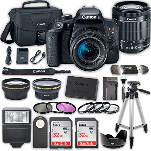 Canon EOS Rebel T7i DSLR Camera Bundle with Canon EF-S 18-55mm f/4-5.6 IS STM Lens + 2pc SanDisk 32GB Memory Cards + Accessory Kit
