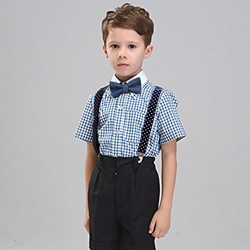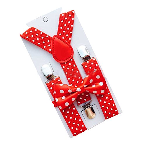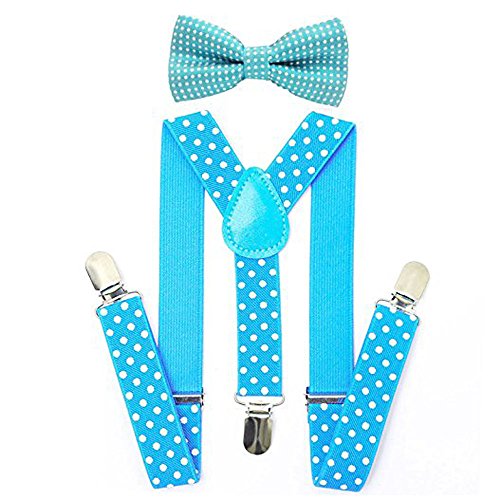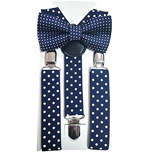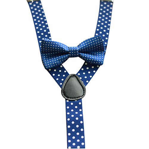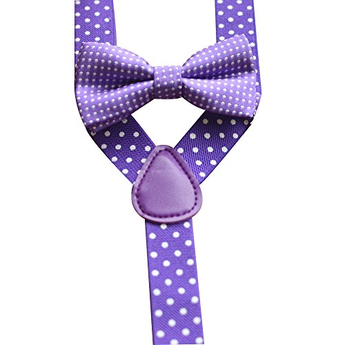 Description: 1. Material:polyester silk 2. Size: Bowtie: length:3.9"(10cm), width:1.9"(5cm); Strap: length: 15"(36cm), Width:0.98"(2.5cm) Suspender is stretchable, 15"-25.6"(36cm-65cm) 3. Pre-Tied Bow Tie with adjustable buckle,adjustable strap and suspender to fit most 4. The bowtie easy to match with your clothes.It fits 1-10 years old.. 5. Gift Idea or suit for wedding, party and formal occasion