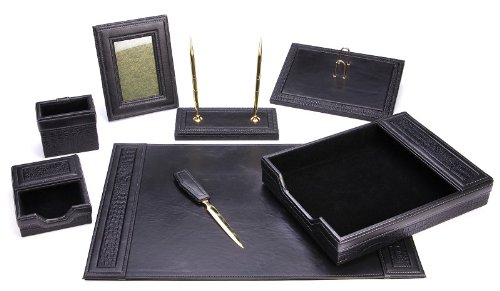 Majestic Goods Office Supply Leather Desk Set, Black (W934)