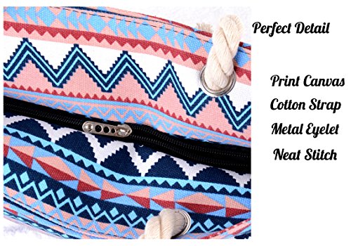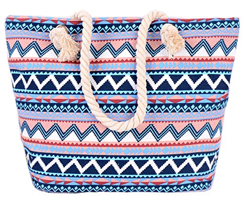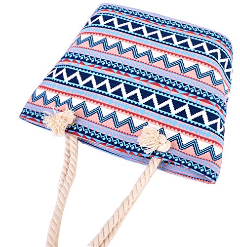 Pulama Women Beach Tote Canvas Shoulder Bag Wave Striped Anchor Summer Handbag Top Handle Bag Straw Beach Bag Multi Blue