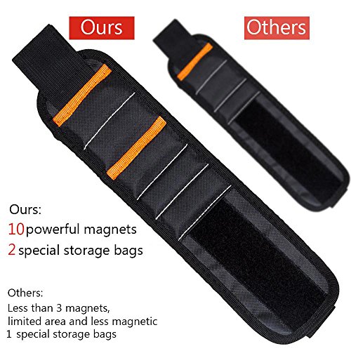 - MAKE IT MORE EFFICIENT - Help to speed up your small projects around your house. No need to fumble around looking for nails or screws. Many professional mechanic are highly recommend this magnetic wristband.