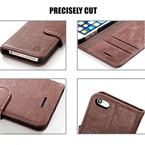 iPhone SE Cases, GELITE® Genuine Leather Wallet Case, 4 Inch Screen, Premium Cowhide Leather Cases with Credit Card Slots and Kickstand, Magnetic Flap Closure for iPhone 5 / 5S (Dark Brown)