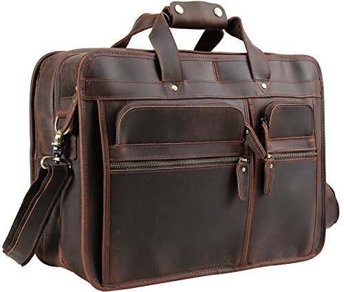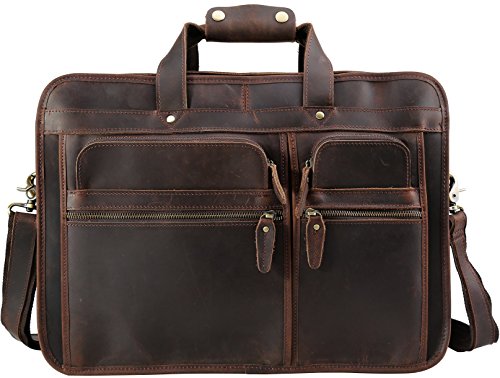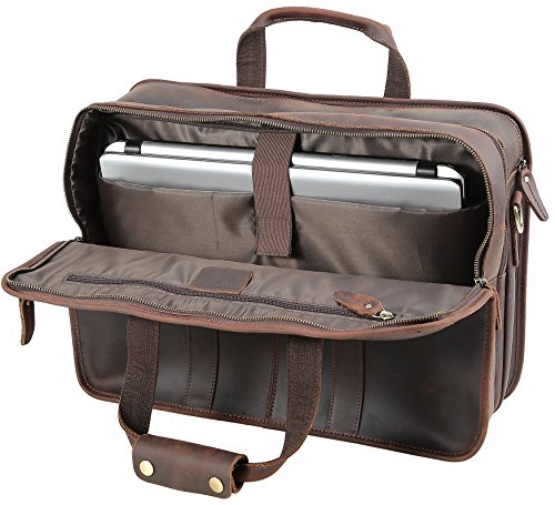 -. Binding : Personal Computers -. Brand : Iswee -. Feature : Feature: This large messenger bag can fit two 17" laptops easily. 3 big main compartments for most of your daily and even traveling essentials. It's perfect for working and traveling. It can match with the suitcase easily. / Material: Full grain crazy horse leather+Polyester fiber lining for this 17" laptop bag. / Closure: Zipper closure, durable and safe access. / Structure: 3 big main compartments. 1 front big compartment with 1 zipper pocket, 1 open small pocket, 3 pen slots and 8 card pockets. 1 middle big main compartment and 1 back main compartment with 1 zipper pocket and laptop pad. Can fit 17" laptop, but only 15.6" laptop if you put it in the laptop pad. 4 front zipper pockets for some small and frequent using things.1 big back zipper pocket for some easy taking things. / Dimensions: L: 17.3"W:5.9"H: 12.5" Weight:4.85 pounds -. Label : Iswee team -. Manufacturer : Iswee team -. ProductGroup : PC Accessory -. ProductTypeName : CARRYING_CASE_OR_BAG -. Publisher : Iswee team -. Size : L: 17.3"W:5.9"H: 12.5" -. Studio : Iswee team -. Title : Iswee Leather 17” Laptop Messenger Bag Large Briefcase Travel Handbag For Men